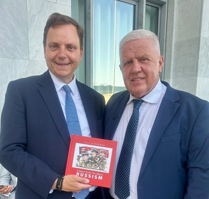 Місією пана Олександра було і донесення думки сучасного культурного середовища України щодо геноцидної агресії Росії до міжнародного середовища. Таким кроком стала презентація на конференції нової книжки в англійському перекладі відомого українського письменника, доктора медицини, Надзвичайного і Повноважного посла України в США, Канаді, Ізраїлі, Мексиці, Голови Ради НМФ Юрія Щербака "Рашизм: Звір з Безодні" (Russism: A Beast from the Abyss) з чудовими сатиричними ілюстраціями художника Олексія Кустовського.