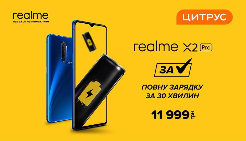 Найпродуктивніший пристроєм на презентації Цитруса був realme X2 Pro, він обійшов Xiaomi Mi 9T Pro і Honor 20 Pro по значному кількості параметрів. Смартфон отримав квадрокамеру з основним сенсором Samsung ISOCELL GW1 на 64 Мп, ширококутним об'єктивом з кутом огляду 115 , телеоб'єктивом з 20-кратний з гібридним оптичним зумом, нічним режимом і режимом для портретної зйомки. Алгоритм стабілізації відео і надчутливий гіроскоп дає можливість плавного зйомки при русі. Фронтальна камера Sony IMX471, дозвіл 16 Мп. Процесор Snapdragon 855 Plus з рідинним охолодженням, GPU Adreno 640 на 15%, дисплей Super AMOLED з частотою оновлення 90 Гц. Пристрій наділене сканером відбитків пальців. Батарея на 4000 мАг, заряджається за 35 vbyen на 100%, завдяки SuperVOOC на 50 Вт. Чіп NFC дасть можливість безконтактної оплати і миттєвого підключення аксесуарів. Вартість 11999 грн.